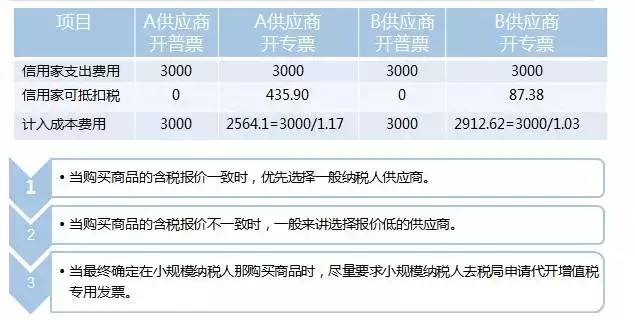 ① 先了解供应商的纳税人资格。A是税率为17%的一般纳税人;B是征收率为3%的小规模纳税人。