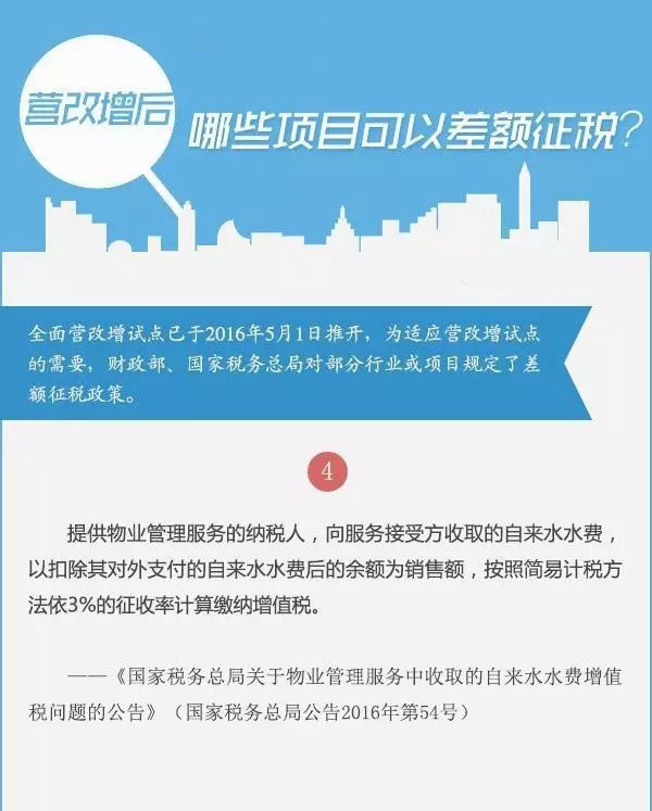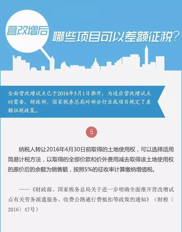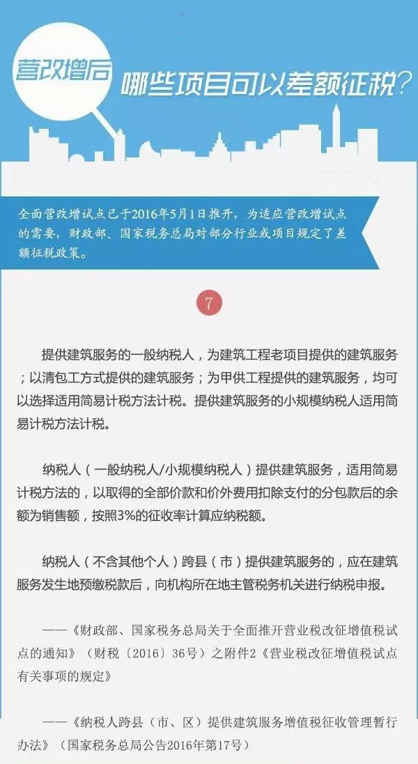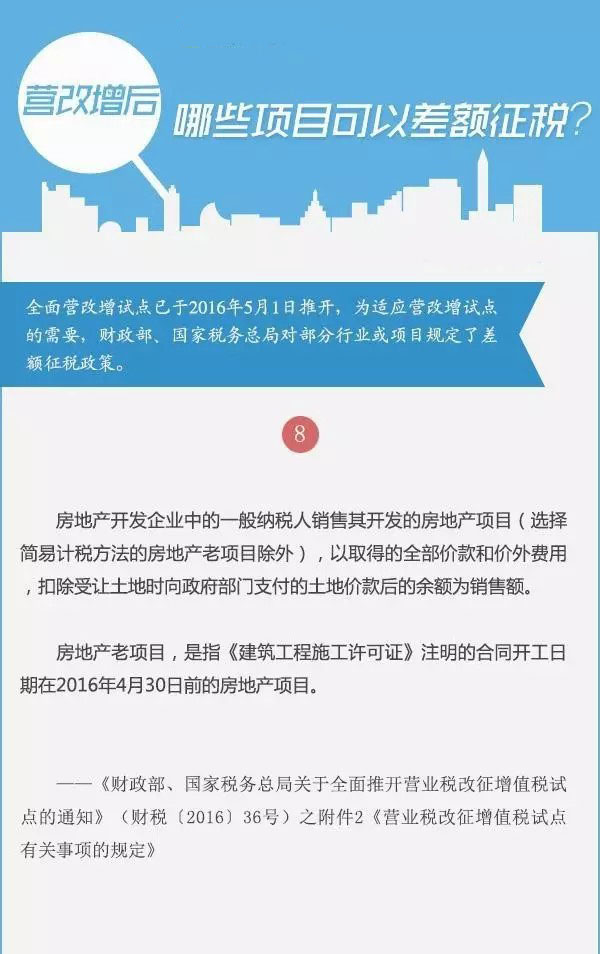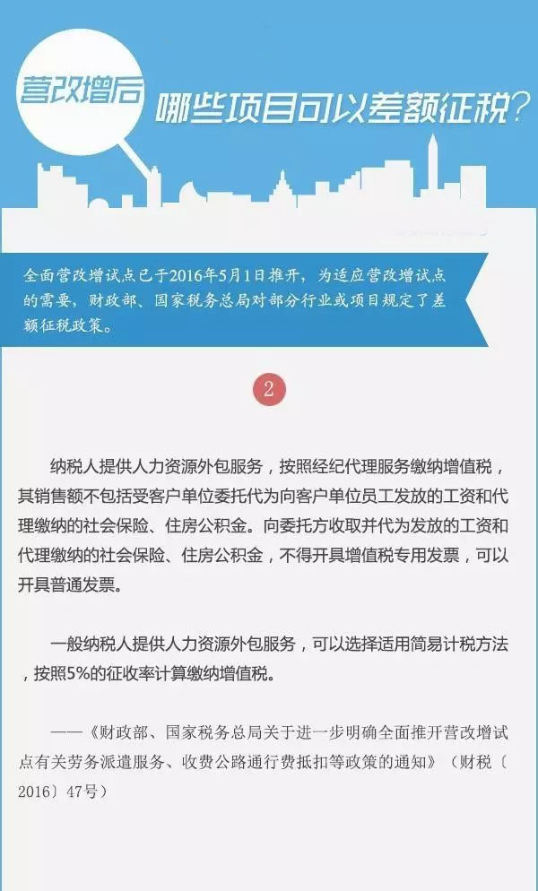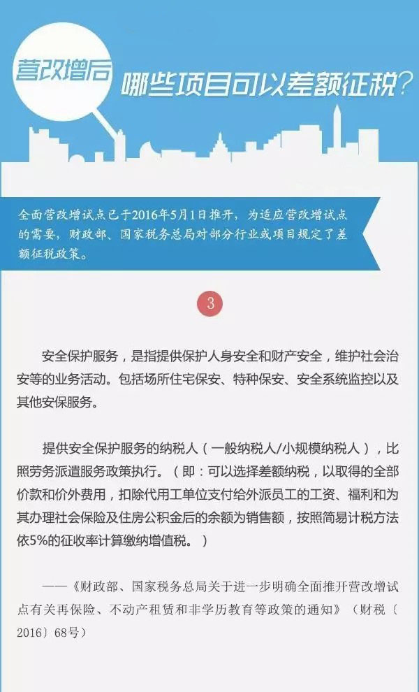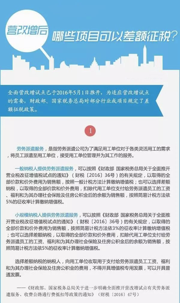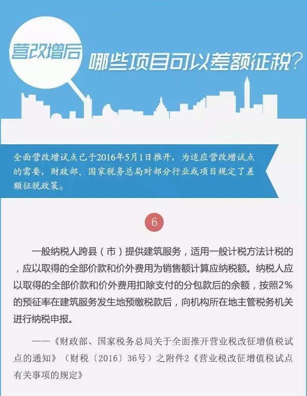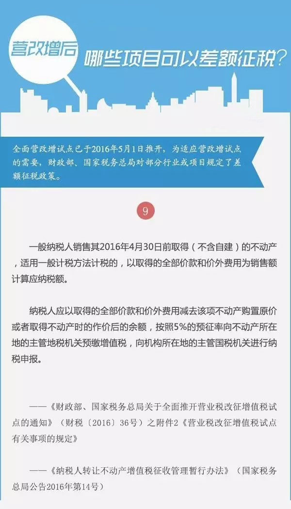 全面营改增试点已于2016年5月1日推开,为适应营改增试点的需要,财政部、国家税务总局对部分行业或项目规定了差额征税政策