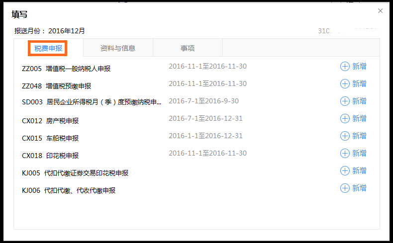 所有申报表(即除了【资料与信息】和【事项】之外的【税费申报】里的所有报表)(如下图所示)。
