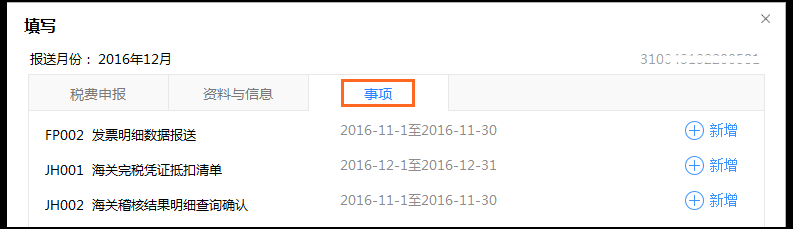 在【填写】—【资料与信息】以及【事项】里的如下几张: