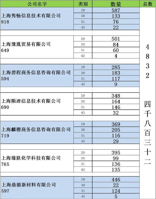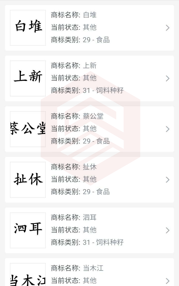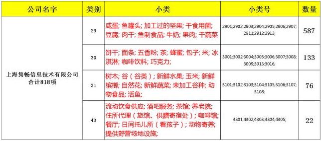 在这也就不一一赘述了,大部分的情况都是一样的结果。那么我们来看一下这家公司注册的商标都是哪些类别吧。
