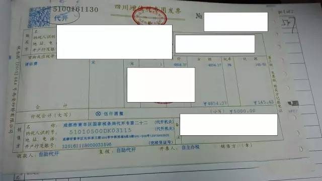 代开的发票是这样的。以后就是自开了,左上角就没有代开字样了。
