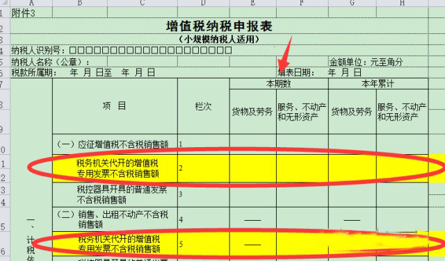 填写在《增值税纳税申报表》(小规模纳税人适用)第2栏和第5栏“税务机关代开的增值税专用发票不含税销售额”的“本期数”相应栏次中。